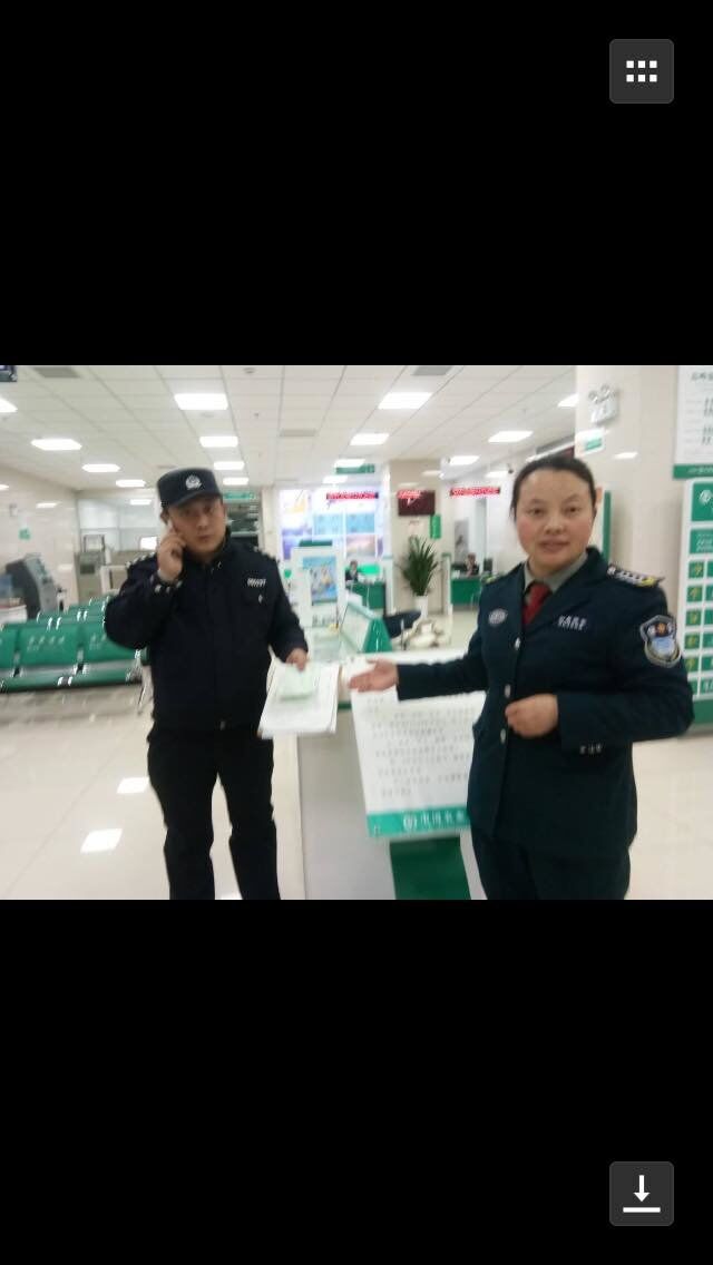 11月24日下午3時53分,中行西皋支行保安冒萍在服務區巡查時拾到手機一部,已交還失主,失主表示感謝。