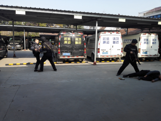 為檢驗武裝押運(yùn)隊伍的實(shí)戰(zhàn)能力,如皋市保安公司押運(yùn)部于2017年2月15日舉行防搶及執(zhí)行押運(yùn)任務(wù)過程中突發(fā)事件處置匯報演練。此次匯報演練的內(nèi)容有:運(yùn)鈔車在銀行網(wǎng)點(diǎn)交接款箱時遇不法分子持械搶劫、運(yùn)鈔車在途中發(fā)生自燃事故的處置、運(yùn)鈔車在途中發(fā)生故障的處置、運(yùn)鈔車發(fā)生交通事故的應(yīng)急處置等。