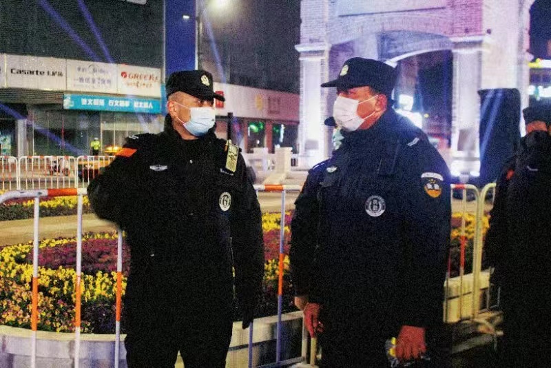除夕夜,“兔年迎新·鐘聲祈福”燈光秀活動在如皋市中山路鐘樓區舉行。如皋保安公司派出80人參與此次活動安保服務。